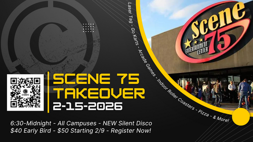 All Campus Scene 75 Event is a one-night takeover for students in grades 6–12 and packed with high-energy fun. We’ll kick things off with powerful worship followed by a message from event and conference speaker Charlie Alcock.